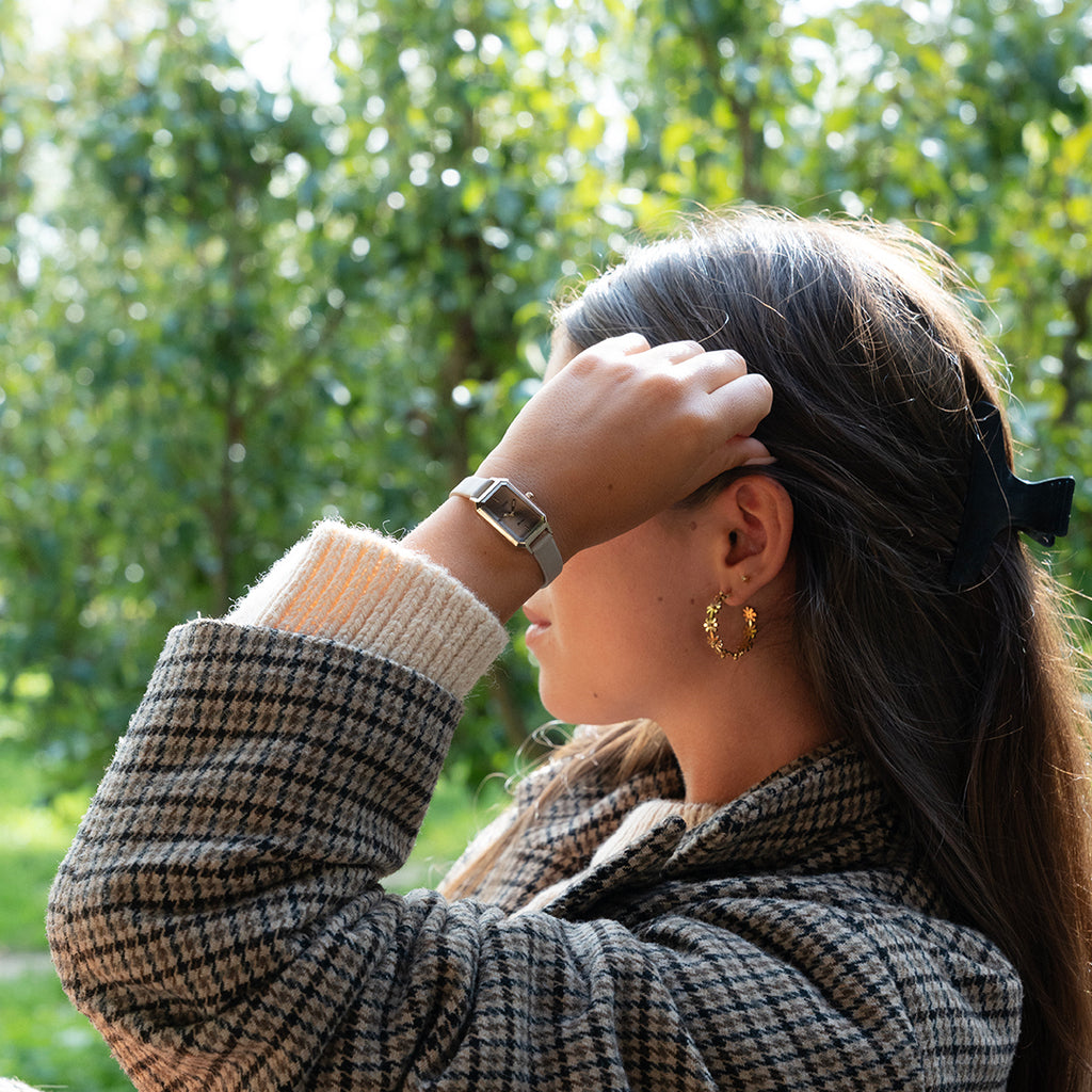 The classic look stays key in this trendy series and therefore, this rectangle OOZOO vintage design with a playful wink is the season must-have! This ladies watch is the perfect combination of fashion and comfort with its 22x19 mm gold coloured metal watch case and taupe sunray dial. The taupe leather strap makes this watch a trendy accessory, which you can wear every day. The dial has gold coloured stripes digits and matching hands. The C20420 adds the sparkle to your outfit. The mineral glass lays in a mm slim metal watch case with IP-plating. This design has a stainless steel backplate and is nickel safe. This watch has a 2ATM Japanese movement and is covered by a 2 year warranty (see section 3 of our Refund, shipping & warranty policy).
