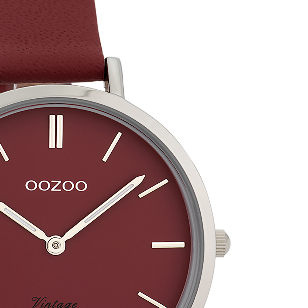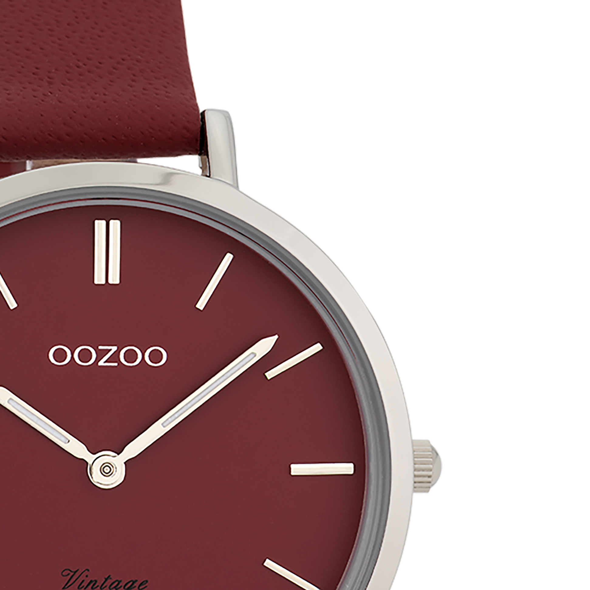 Silver coloured OOZOO watch with burgundy leather strap - C9815