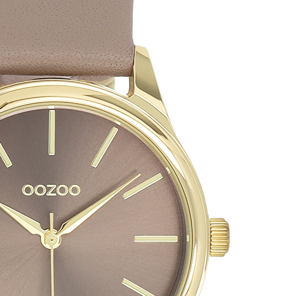Gold coloured OOZOO watch with taupe leather strap - C11677