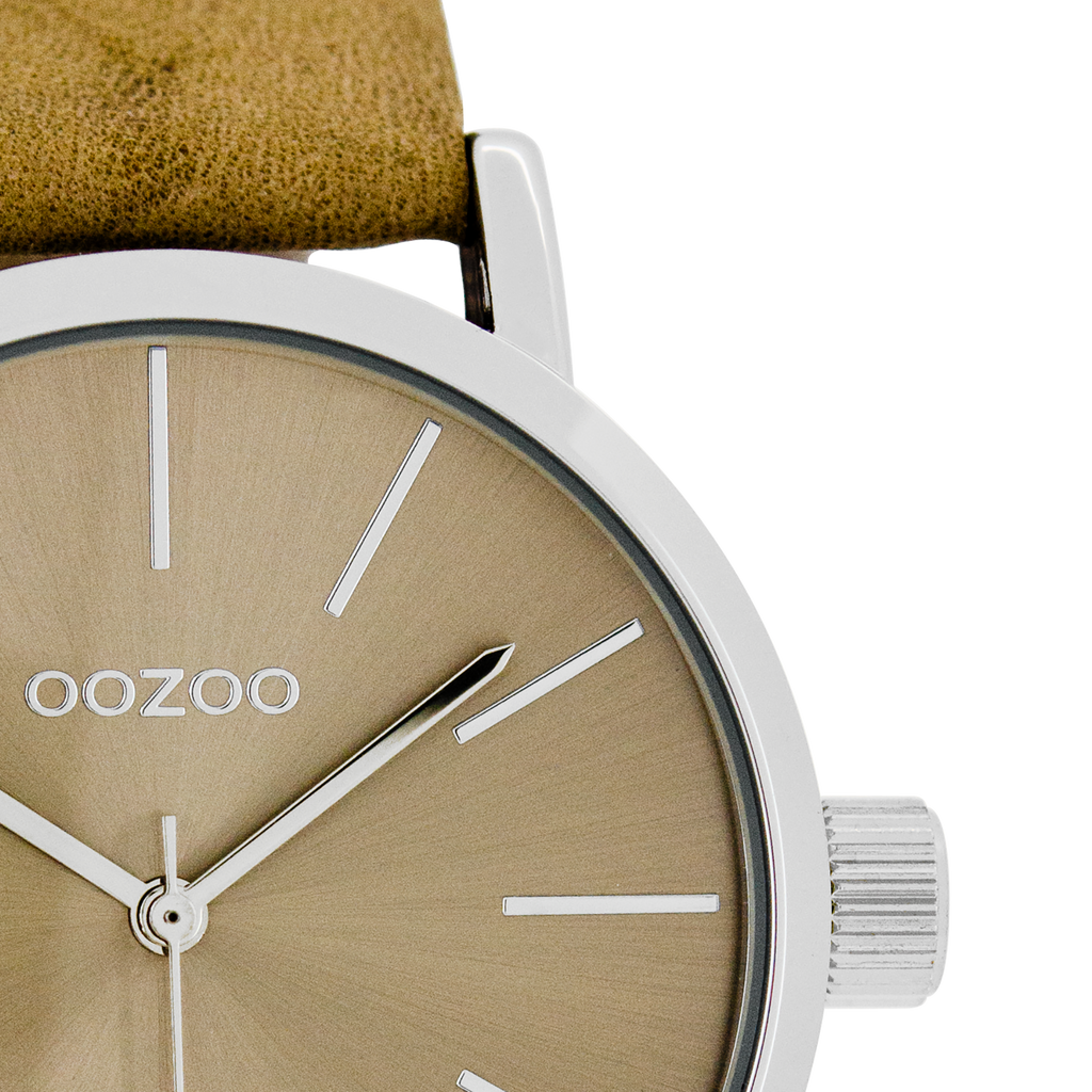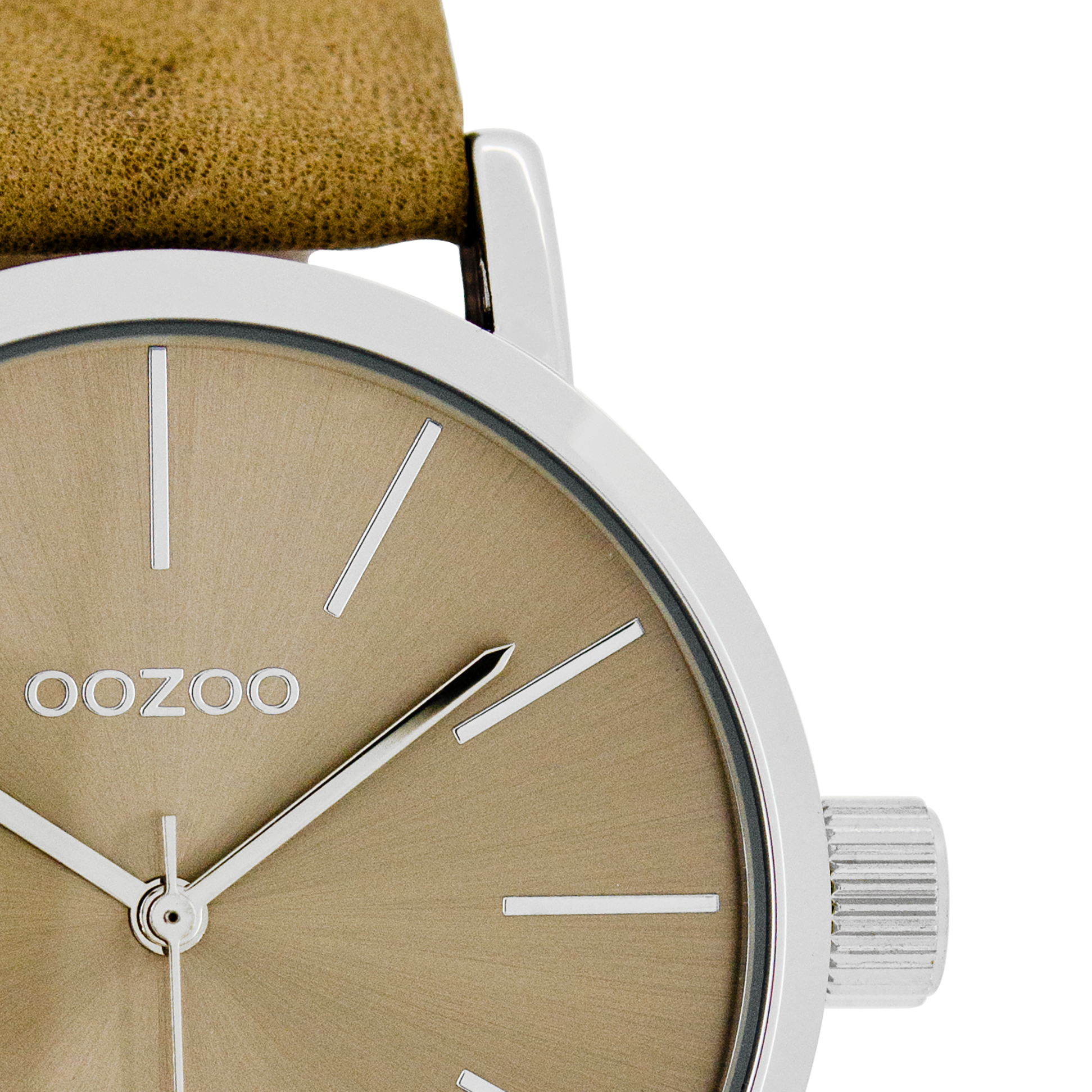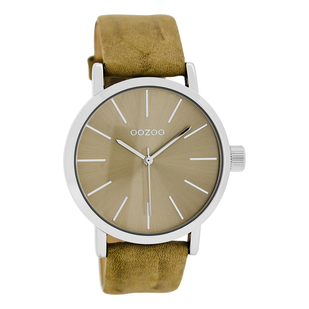 Silver coloured OOZOO watch with sand leather strap - C8420