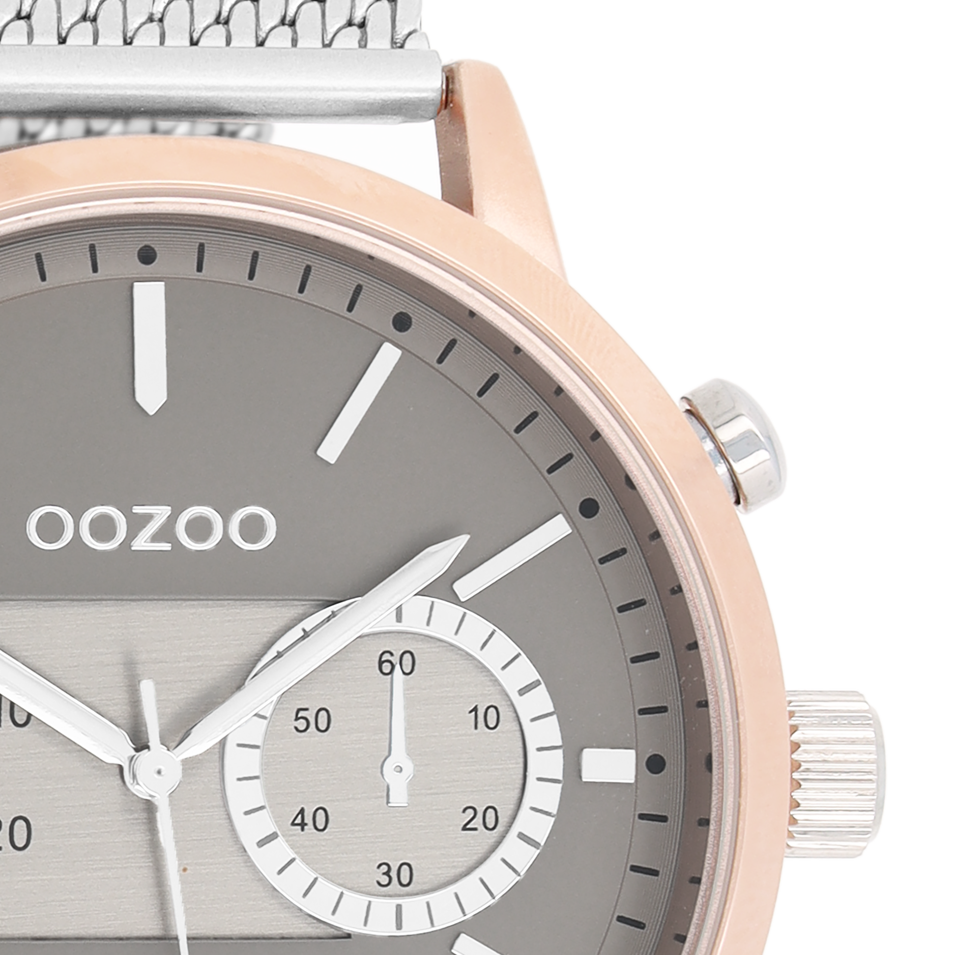 Rose gold coloured OOZOO watch with silver coloured metal mesh bracelet - C9072